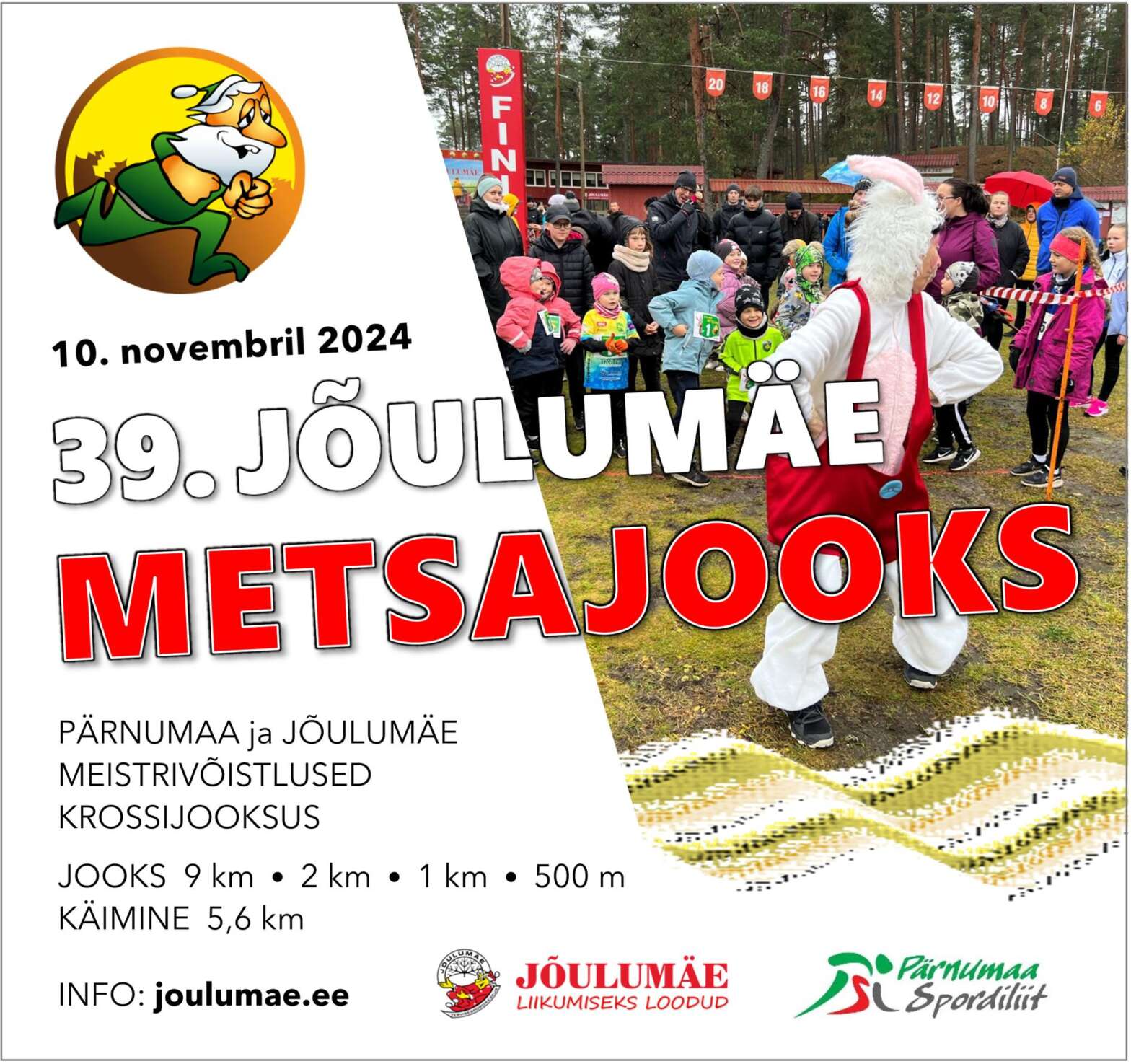 Tähelepanu! Jooksuvõistluste tõttu on SULETUD pühapäeval, 10.11 kell 9.00 – 14.30: kollane ja punane disc golf´i rada kõik jooksurajad asfaltkattega liikumisrada peastaadion Palume piirangutest kinni pidada ning võistluste kulgemist mitte segada. Avatud radadel palume olla ettevaatlikud ning tagada ohutus. Jõulumäe metsajooks toimub mardikuu teisel pühapäeval, 10. novembril. Jõulumäe metsajooks on traditsiooniline hooajalõpuüritus, mis toob muinasjutulisse… Continue reading Jõulumäe metsajooks ja tervisekäimine 10.11